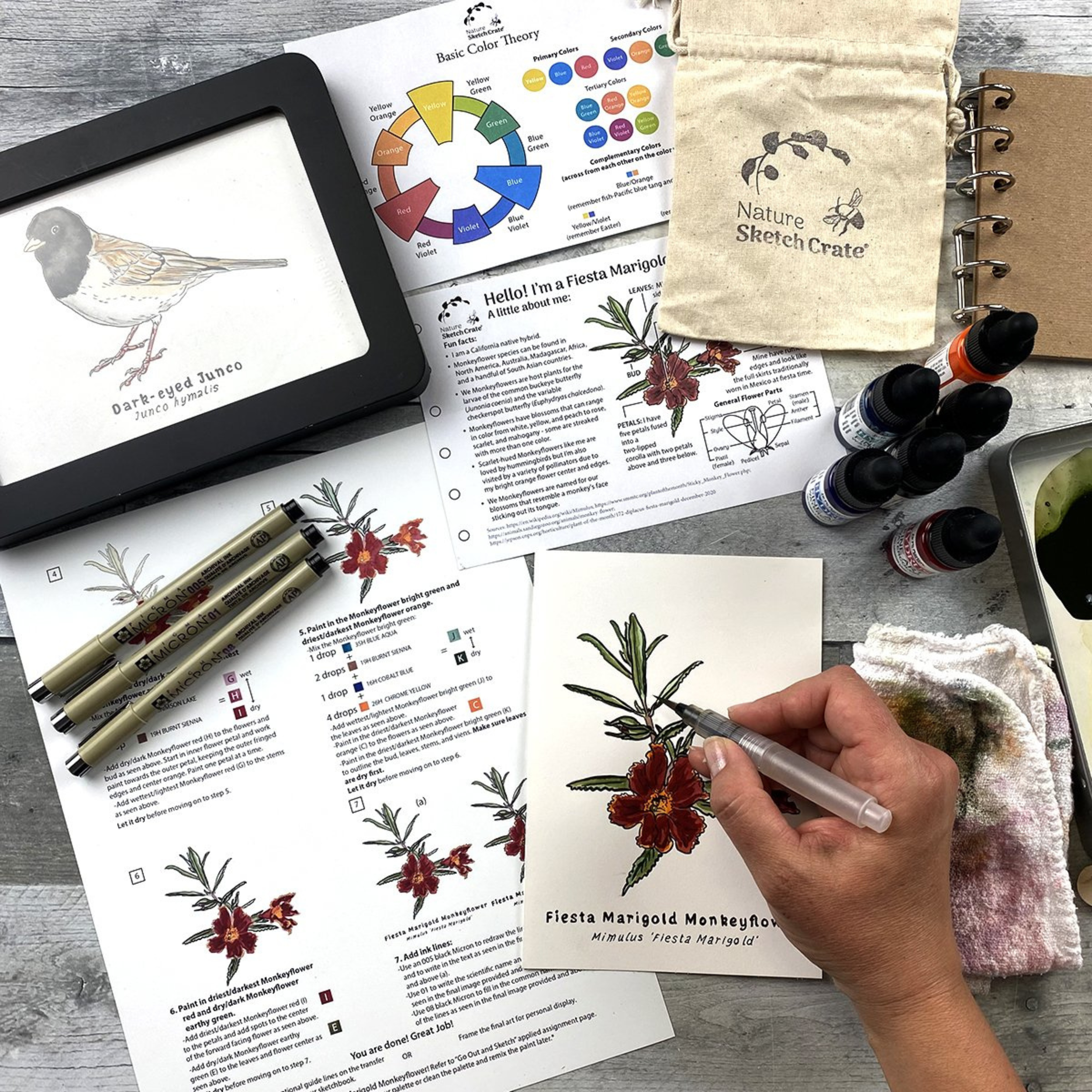 "The step-by-step directions were easy to follow. As a non-artist, I felt confident." - Betty • "Would recommend NSC to anyone & everyone. My daughters and I (ages 8, 6, & 4) LOVE Nature Sketch Crate!" - Shay • "Every month, I am blown away by the quality of each crate. The supplies (paints, paper) are beautiful." - Ari • "It was so therapeutic!" - Kim •